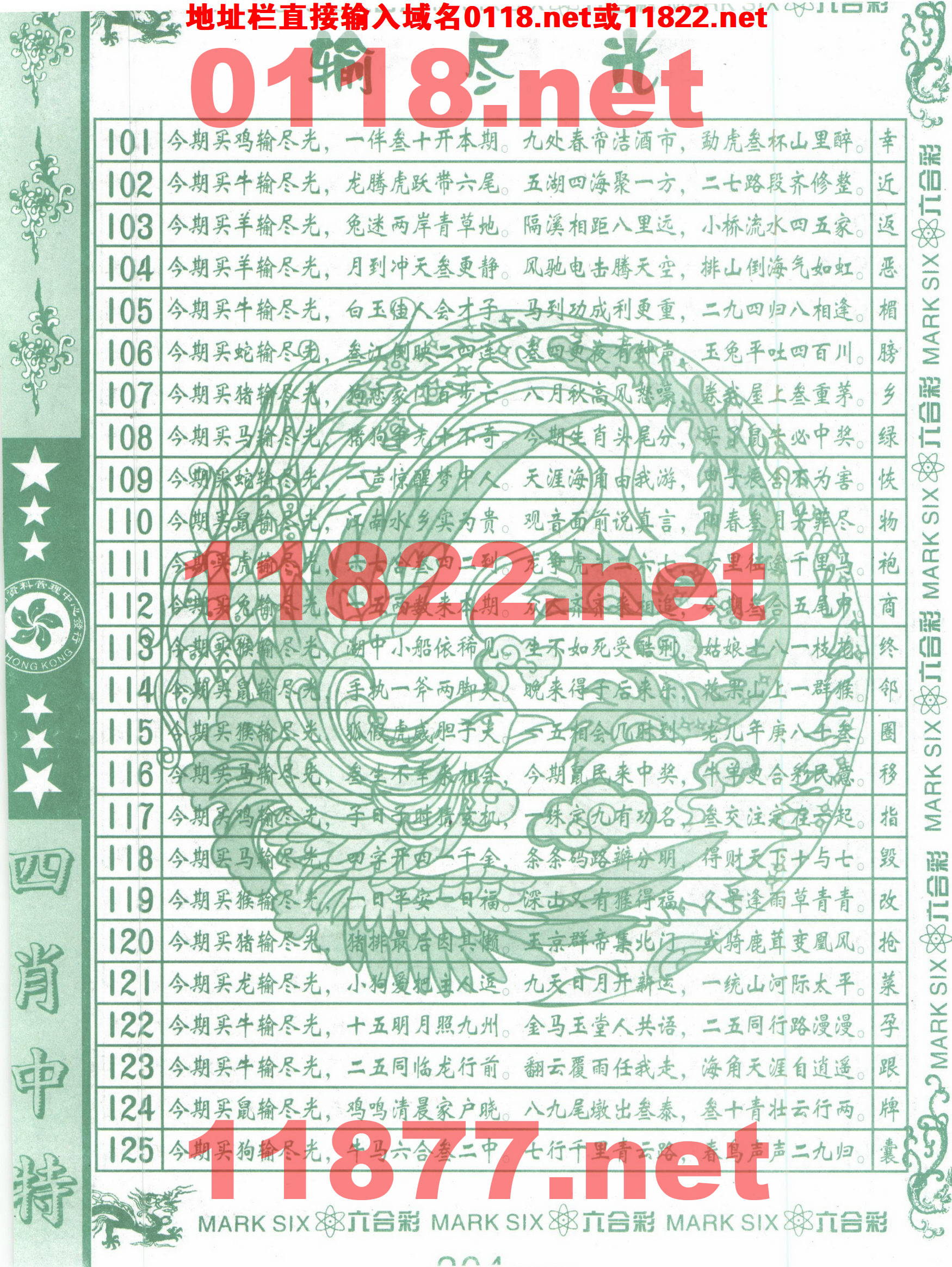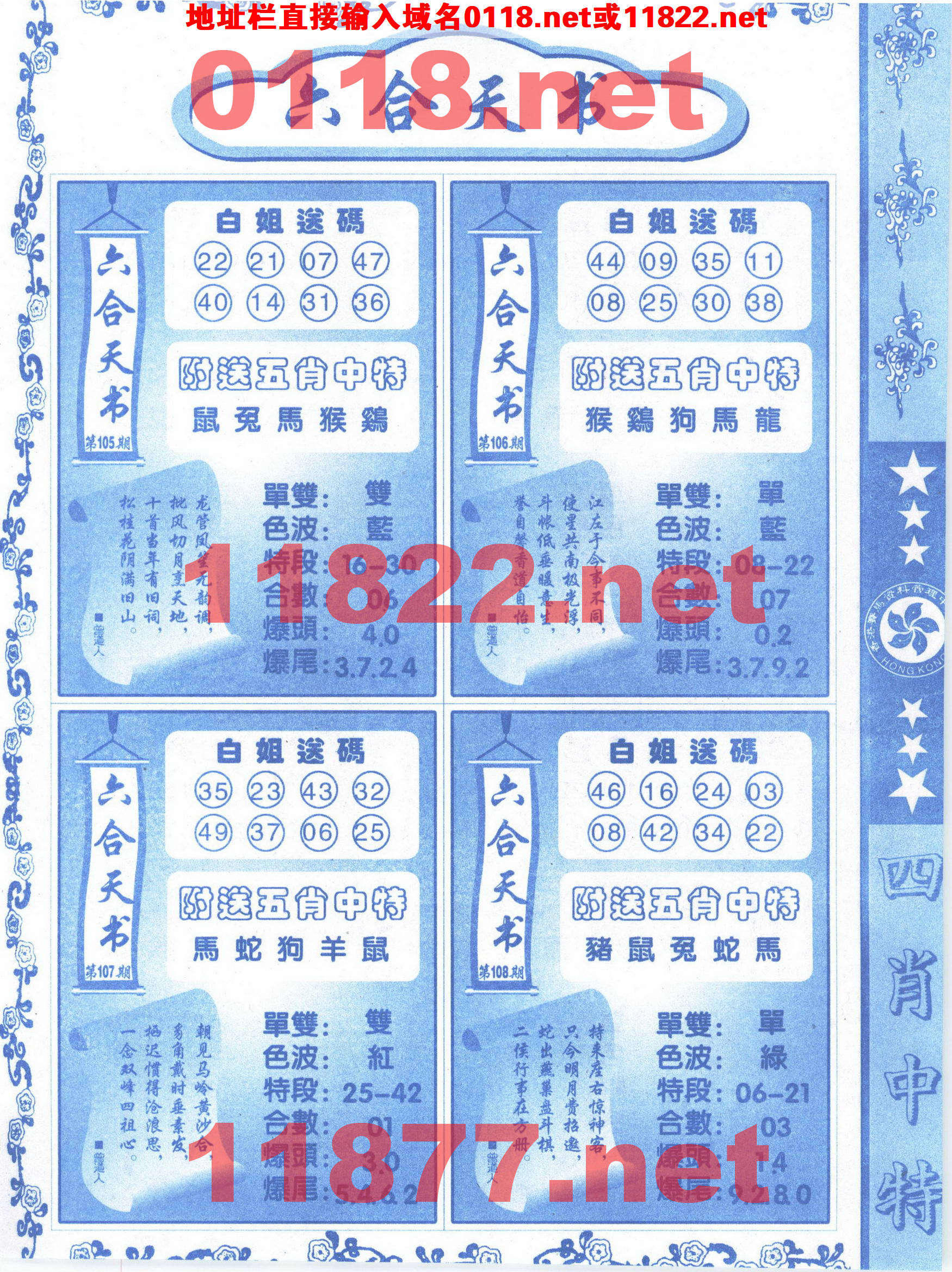 | 105 | 四肖中特 | 106 | 四肖中特 | 107 | 四肖中特 | 108 | 四肖中特 |