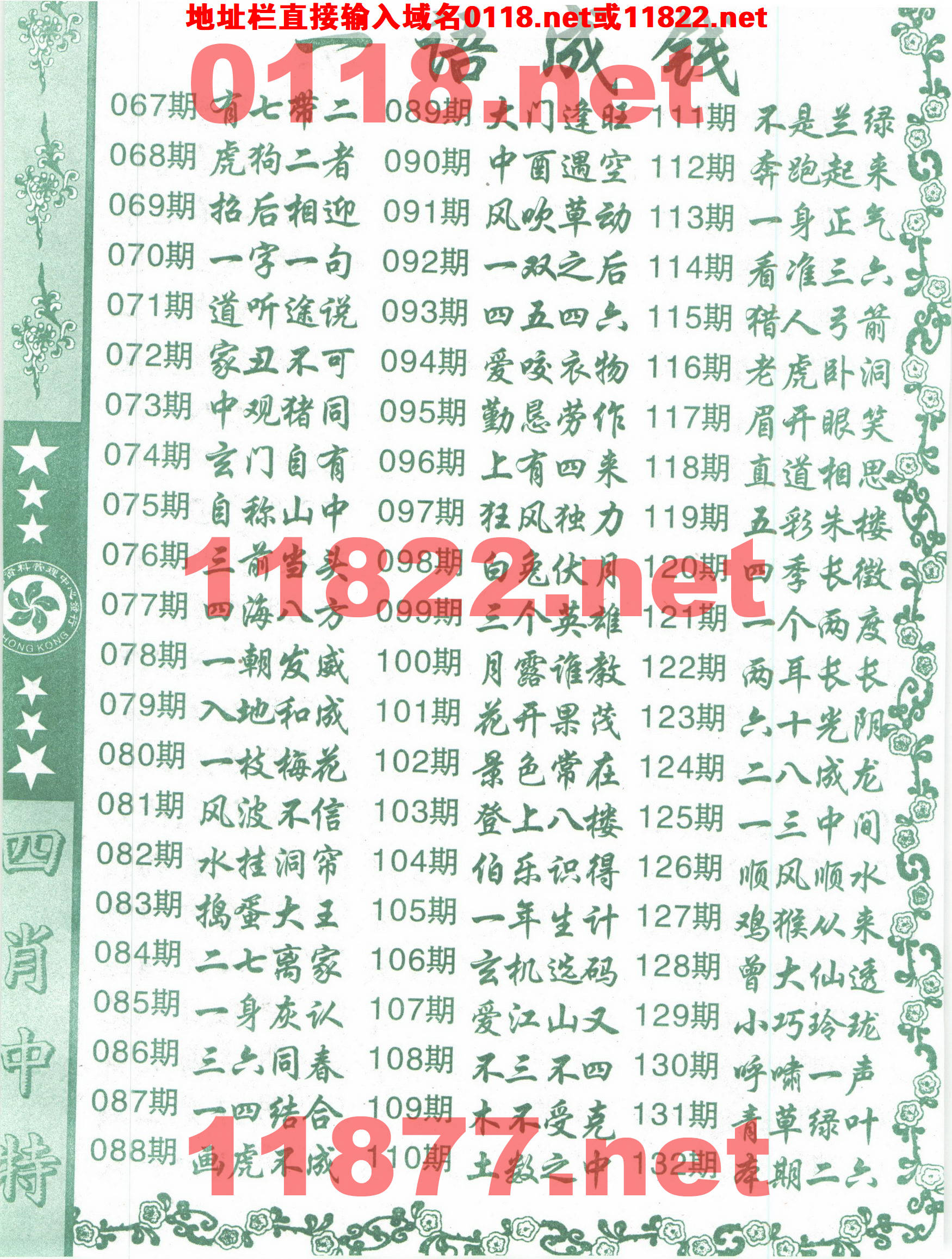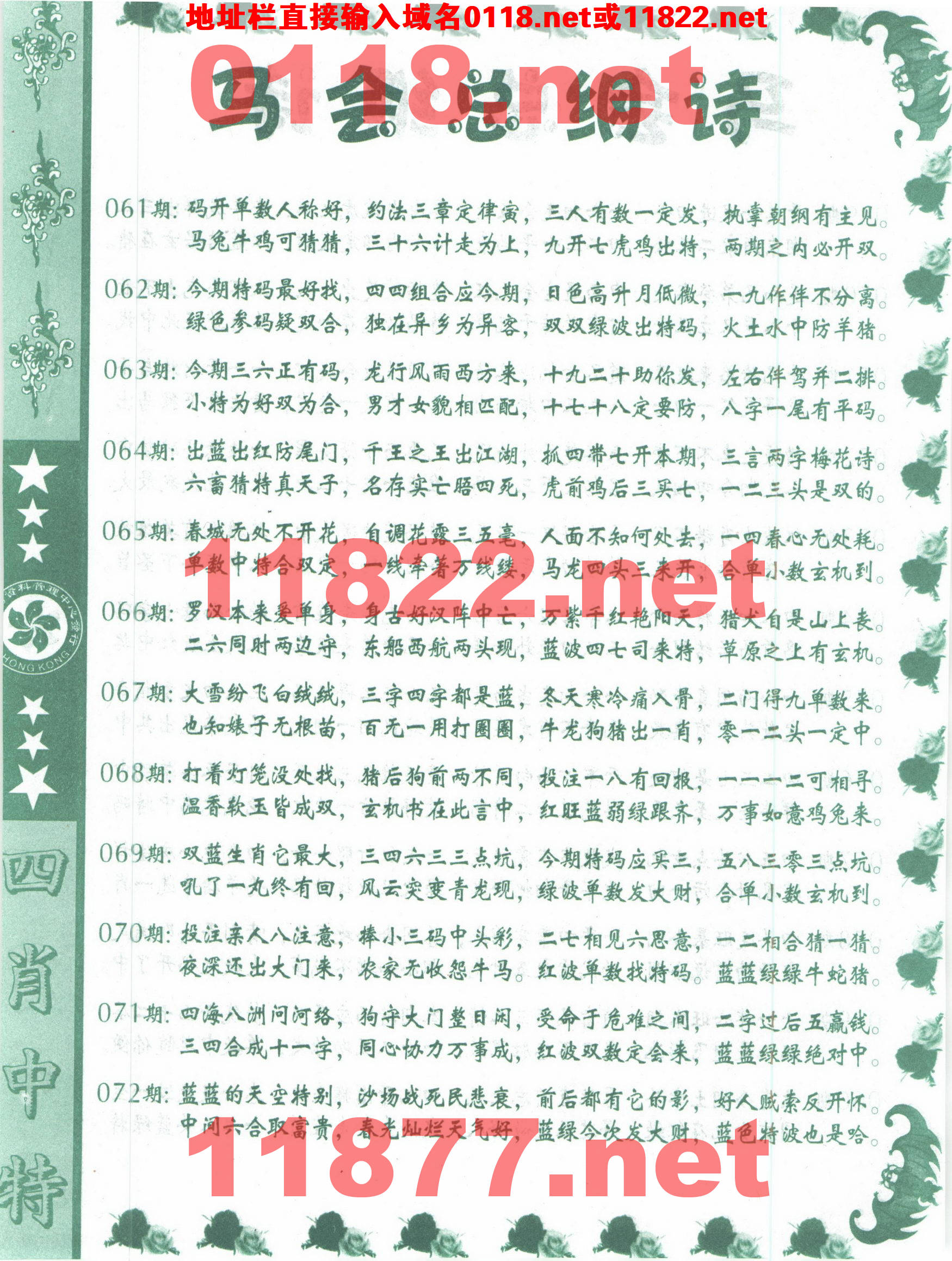 | 069 | 四肖中特 | 070 | 四肖中特 | 071 | 四肖中特 | 072 | 四肖中特 |